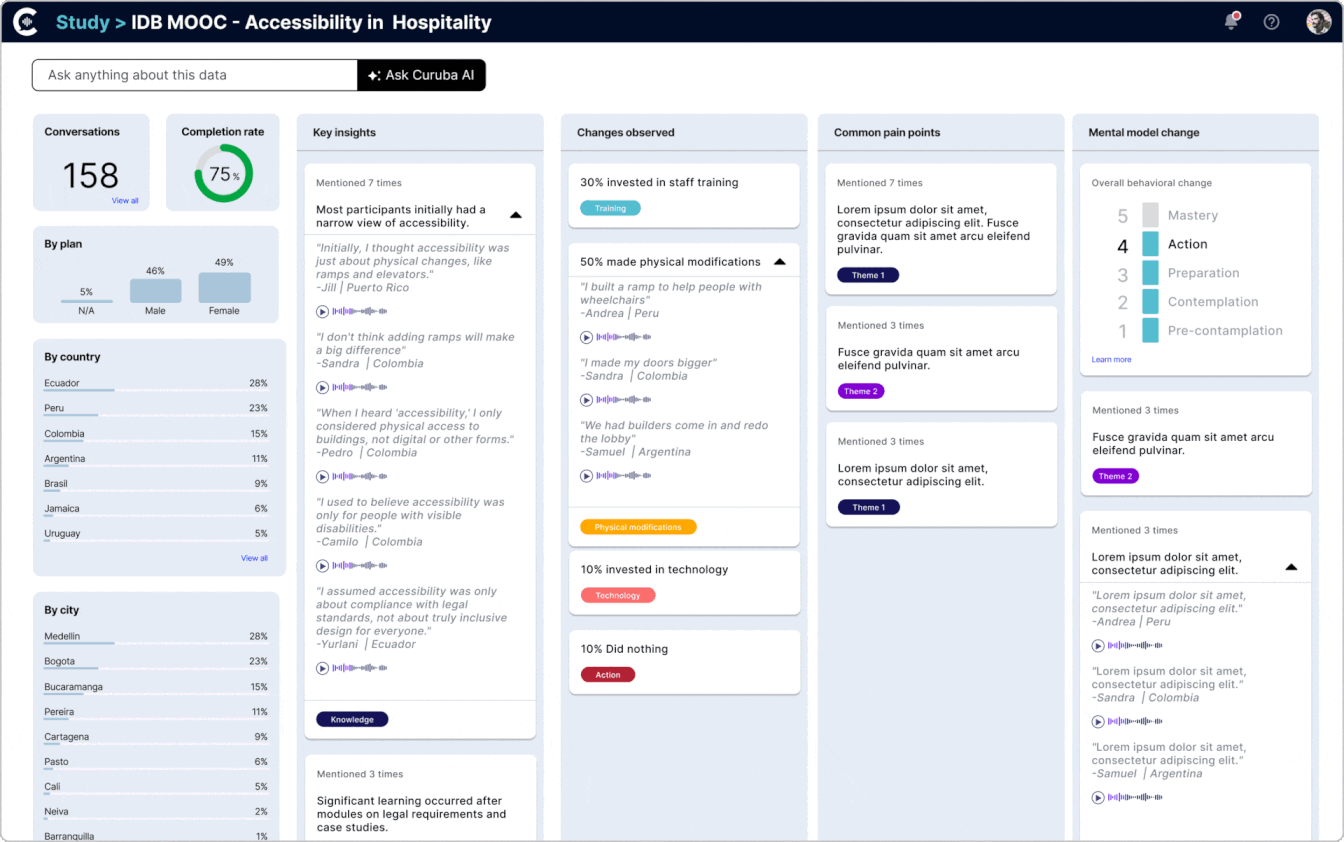 Integrate qualitative insights from our AI interviewer with quantitative metrics to form a complete picture of your project's impact. Our platform allows you to capture both hard data (e.g., infrastructure improvements) and personal stories, providing a holistic understanding of your achievements.